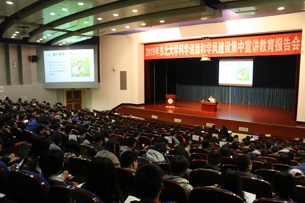 4月25日,2019年东北大学科学道德和学风建设集中宣讲教育报告会在汉卿会堂报告厅举行,北京理工大学教授冯长根受邀担任宣讲嘉宾。全校各学院师生共计400余人参加会议。