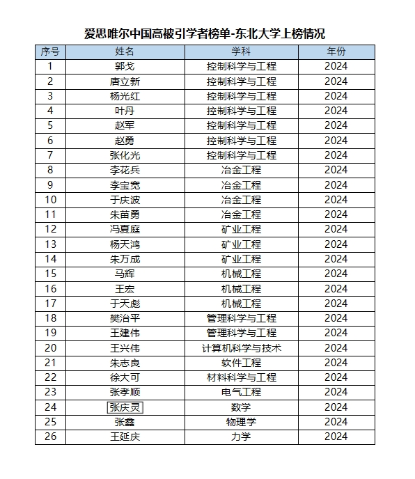 2025年3月25日,爱思唯尔(Elsevier) 正式发布2024“中国高被引学者”(Highly Cited Chinese Researchers)榜单。我校共有26位学者上榜。此榜单以全球权威的引文与索引数据库Scopus作为中国学者科研成果的统计来源,采用上海软科教育信息咨询有限公司开发的方法,至2025年,已是双方合作进行的第十一次发布,并受到国内外众多媒体和学者的高度关注。