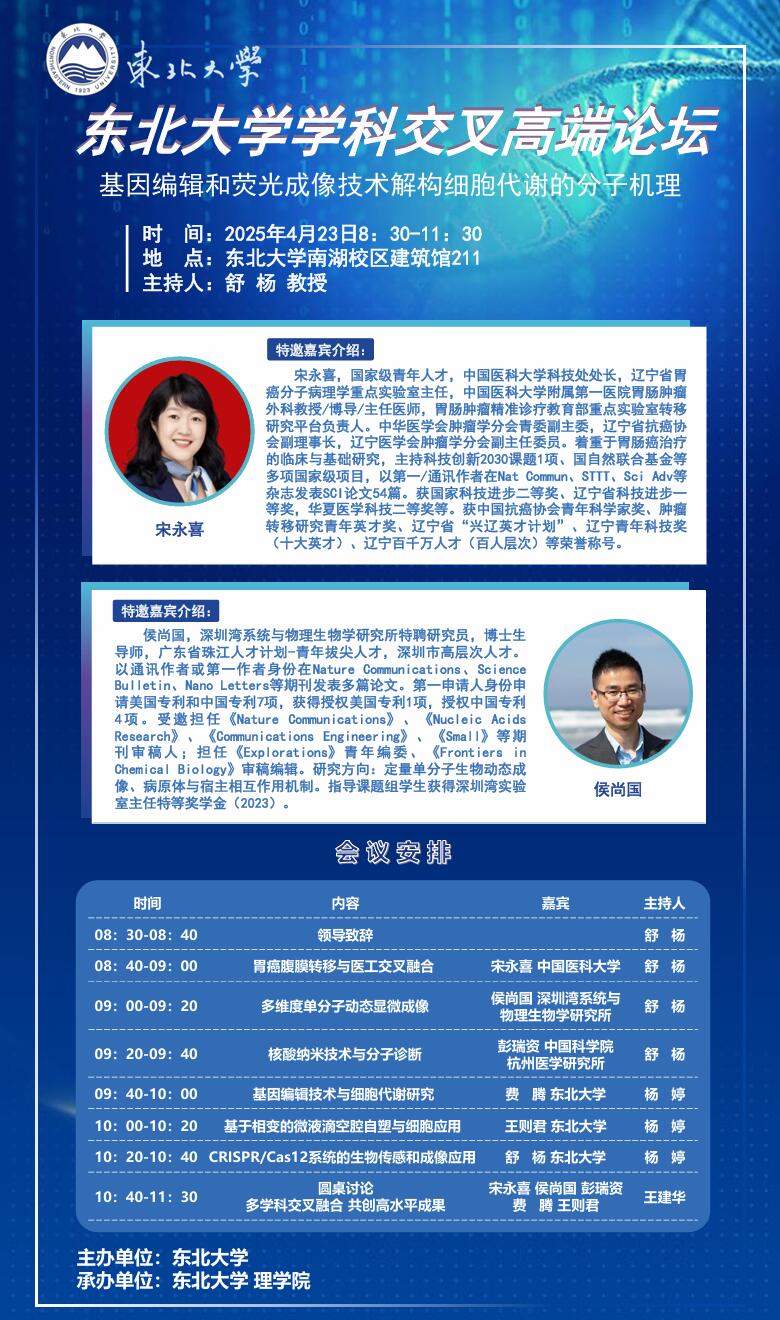 东北大学学科交叉高端论坛——基因编辑和荧光成像技术解构细胞代谢的分子机理