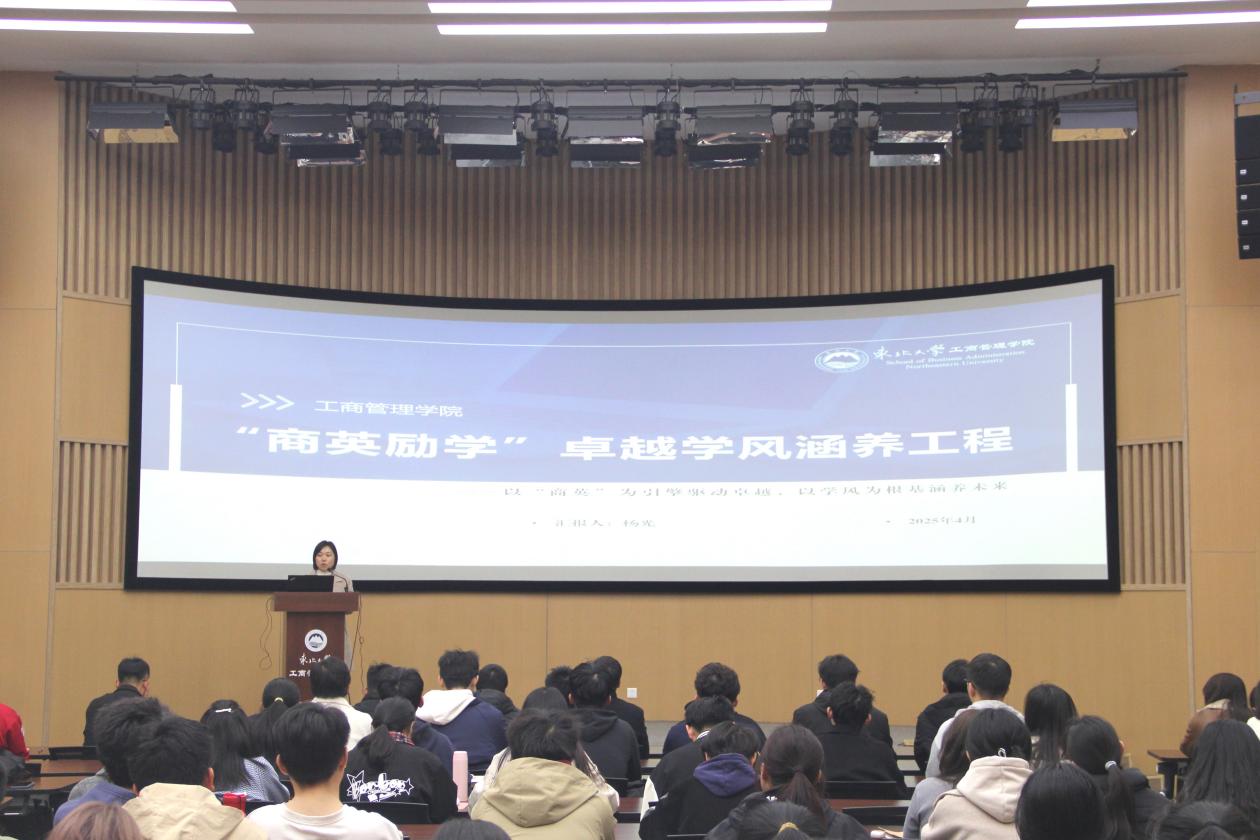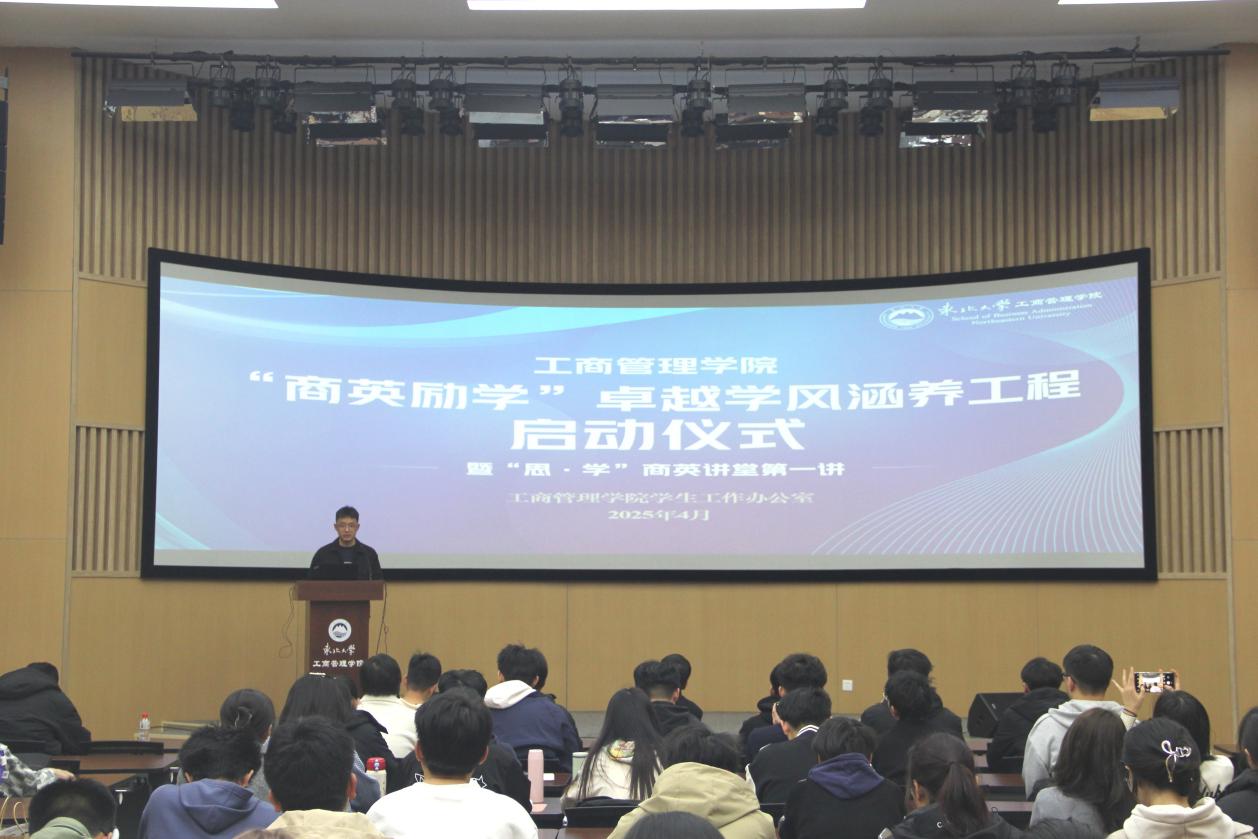 为进一步强化学风建设引领作用,工商管理学院于4月2日,在文管学馆B450举行“商英励学”卓越学风涵养工程启动仪式暨“思·学”商英讲堂第一讲活动。学院党委副书记、副院长(兼)吕昫光,学生工作办公室全体辅导员出席活动,大一至大三年级共计百余名学生骨干共同参与,正式开启学院学风建设新篇章。