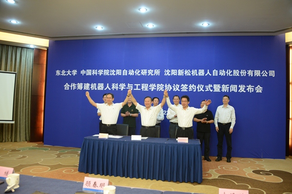 On September 22, Northeastern University, Shenyang Institute of Automation of Chinese Academy of Sciences and SIASUN signed to establish the first Robot Science and Engineering College among the "985 Project" universities of China together at Northeastern University International Hotel.